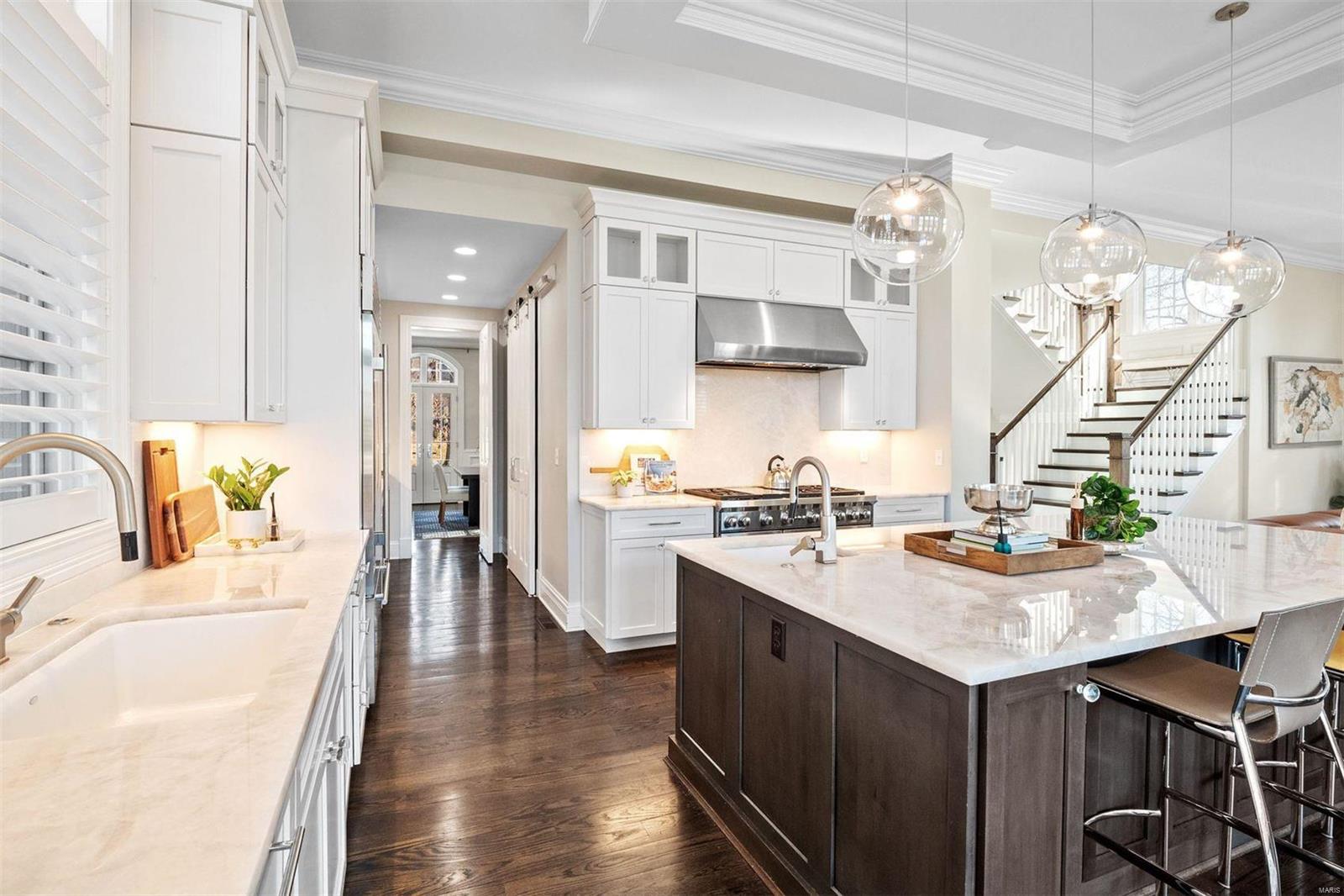 Fall in love w/the elegant home located at 8300 Kingsbury. This luxurious property w/10-foot ceilings, French doors, and large windows allows natural light to flood the surroundings. Discover a gorgeous dining area & a contemporary office space w/newly added floor-to-ceiling stone fireplace. Experience the modern kitchen features a stone island, new Crystello quartzite backsplash, Wolf gas range, SubZero fridge, 2 beverage fridges, and a walk-in pantry. The hearth room, w/a new stone floor-to-ceiling wall surrounding the fireplace, creates a sleek focal point. The 2nd floor has a large primary suite w/a walk-in closet, a bathroom w/a soaking tub, & a walk-in shower. Indulge in the opulence of a regal dressing room w/ the newly renovated en-suite bedroom. Additionally, this lavish home boasts two other en-suite bedrooms, an elevator, and a finished lower level. The ultimate location w/unbeatable proximity to highways, Shaw Park, and Downtown Clayton. Live in luxury @ 8300 Kingsbury. Additional Rooms: Mud Room